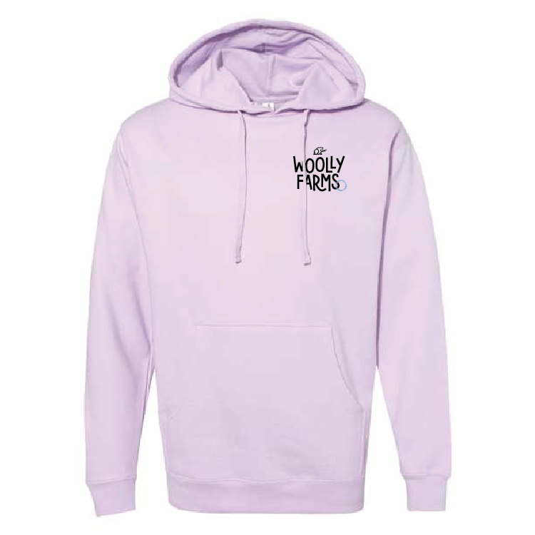 This lavender Independent Trading Co. Midweight Hooded Sweatshirt comes in adult sizes and features the new Woolly logo on the front and the colorful Woolly artwork on the back. It is an 80/20 ring-spun cotton/poly blend fleece with 100% cotton face. It comes in a classic fit with a jersey lined hood, a pouch pocket, and metal eyelets.
